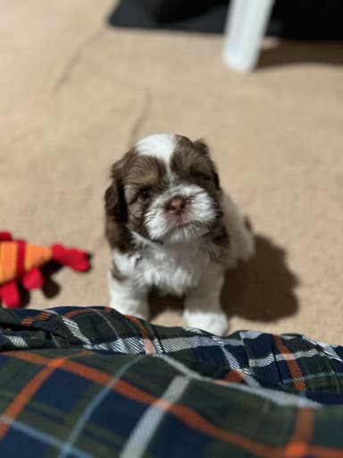 Photos include siblings from previous litters + parents: Grey dad (George) and white mom (Jewels).