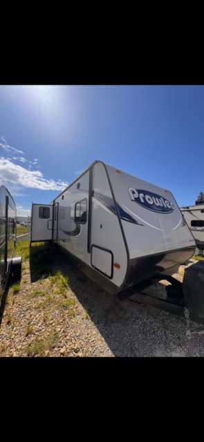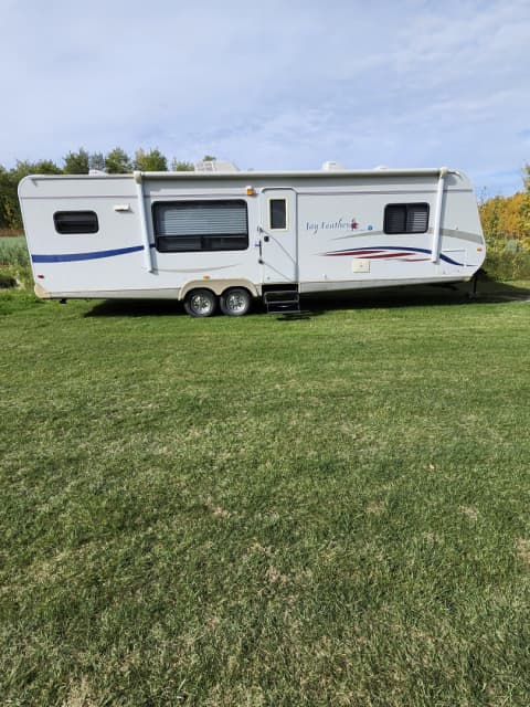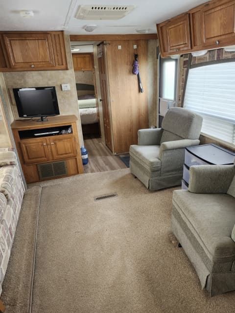 2001 24ft Jayco travel trailer, 240A Quest2001 24ft Jayco travel trailer, 240A Quest model, sleeps 6 (with very tight overhead pull down for small person) or 5 big people normally, 3 way fridge and freezer, gas stove with oven and exhaust fan, AC or just fan( we rarely used AC just fan) u need 30-50 amp service for AC, we usually had 20amp service.