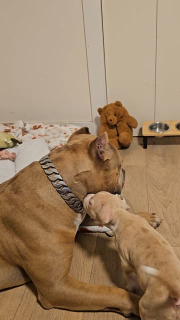 *shipping available for extra cost*Pups are ready for homes right now, they are leash trained and There is males and females left for adoption, The pups have all 4 types of pitbull American/Staffordshire/blue nose/rednose and American bully as well, ive done this on purpose over many years to create hybrids they are magnificent and turn out perfect. The mother is in on a raw/natural diet with zero pet food we control her diet with human grade foods, even through her pregnancy it was our diet and the puppies are super healthy little champions . The pups will be brought up on the same diet. The mother is very strong beautiful and healthy she is 5 and has never had to see a vet not once and fed under a premium deit for her whole life. Ive had the pups great great great grandmother and the pups are 5 th generation. The parents and ancestors were all well worked and well taken care of always have my dogs putting in work and providing love of course. We clean with natural products for cleaning in mind of pups health and they are raised in a family home with love and effort not a pup mill you will not find better cared for pups. ONLY responsible homes need aplly these pups are my family and we want them in good safe homes. Please message me with info about yourself/age/dog experience/how you make a living and your location and we can go from there.