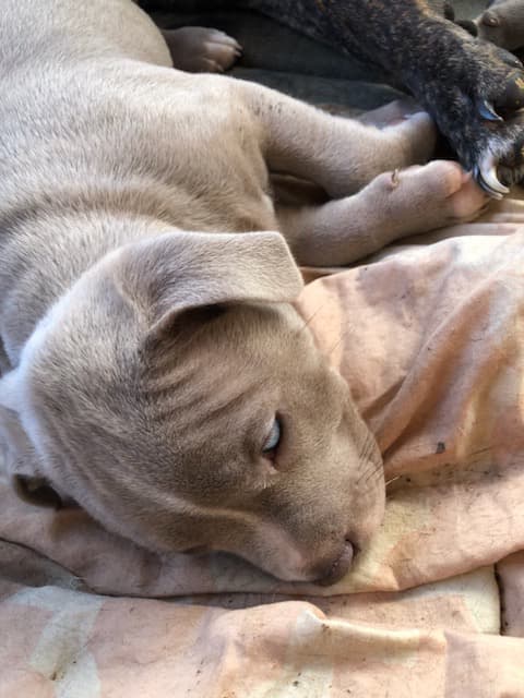 American Pitbull Terrier Thais adorable lil chunky monkey surprised us on August 23 she is the only pup born and is a spoiled rotten diva . I didnt even know mana was pregnant so we need a home for her that has experience with the bully breed . They are not good for first time dog owners. So if this is you and you want this darling baby to join your family get hold of me by text or phone call please 825-488-2398 As far as shots and vet check in the past I have left it up to the families if they want to do it themselves or want me to do it and surprisingly the majority wants to do it themselves . So its up to you I dont have a problem doing it and if you do it the price changes by 50 dollars so let me know She is ready to go now . She is eating solid food well and she can go up the stairs (13 of them ) but not so sure about down yet . She loves to play in the yard with mom and kitty and chases the squirrels . She may be paper trained but that could just be flukes lol but ya as much as I want to say no she is ready to go to her new family anytime !!!! She wont last long so dont miss out Mom is the Blue Dad is the white I have references as to health and temperament from previous litters . Ive had some families come back for a pup from a different litter and one family took 3 from the four litters weve had in the last 11 years So like i said dont miss out Hope to hear from you soon