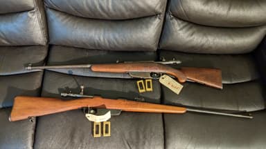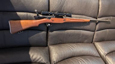 Made in Finland M22000 Valmet Jyvaskyla Standard . 22LR Competition single shot bolt action. 27.5" heavy competition barrel. Adjustable butt plate and set trigger. Friction T channel sling slot. Profiled competition heavy stock for right handed use. Bushnell 3-9 x 20 scope with dovetail rails on receiver. Drilled and tapped for rear sight with front sight mount. VKT (Valmet), or the State Rifle Factory became operational September 9, 1928. Since 1930 Valmet's factory rifle club was active as well, having their hand in the design of the Finnish Lion, together with Aimo Lahti, the chief designer. 2. The Finnish Lion has the longest manufacturing time of all Finnish guns, from 1930 to 1979. Models are: M30 (prototype), M31 mod I, mod IIa, IIb, IVb, IVc, M35, M45, M52, M55, M59, M62, M65, M70, M200002 (Finnish Lion Standard) and wild boar version. Heavier models were the Finnish Lion Match and Champion. Two lighter version were also made, Junior and Pikku Leijona (Little Lion). 3. Serial numbers start from #1 (1932), and end into # 14,358 (1979). 4. The bolt and trigger are said to have been ahead of their time. The lock time is fast. Also the barrels were accurate. Champion models should have a set trigger, which makes lock time longer, but reduces pull weight. 5. Some of Vlamet's success in competition: WORLD RECORDS: -Lucerne 1939, 40 shots prone -400 points, Toivo Mänttäri -Buenos Aires 1949, 3x40 team contest 5770, finnish team, 40 shots standing, 380 points, Pauli Janhonen WORLD CHAMPINSHIPS -Buenos Aires 1949, 3x40 shots, 1165 points, P. Janhonen -Stockholm 1947, 40 shots standing, 377, H. Erben 6. The Helsinki Olympics in 1952 was the prime time of the Lion. A quarter of all shooters shot the Lion, prone gold was won by a Romanian - a Mr. Sirbu, score 400. CFP/RCMP courtesy of Bill C-71 require any firearm to have a transfer registration number approved by the CFT to sell, give or transfer as of MAY 18, 2022. Seller needs the full name and PAL of the buyer with DOB and email as on file with the CFP. Seller then submits information on the RCMP CFP Individual Web Services which confirms the buyers PAL as valid or not with a Reference Number. Failure to do so is subject to Sections 99 & 101 of the Criminal code.