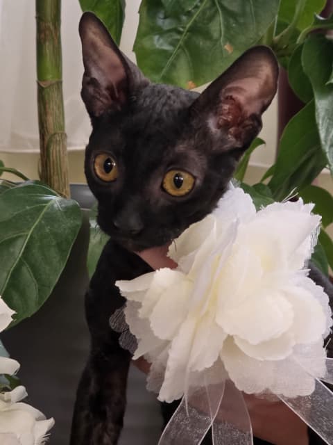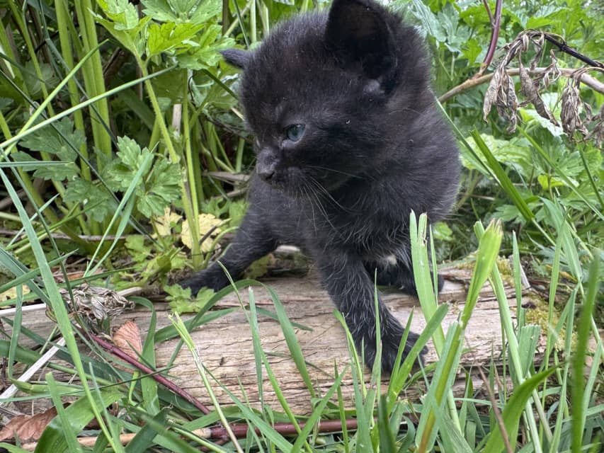 We have four gorgeous all-black kittens, a mix of males and females. At this age, they’re still small and playful—about the size of a large hand to a small forearm when stretched out. They’re energetic, sweet, and already showing loving personalities.