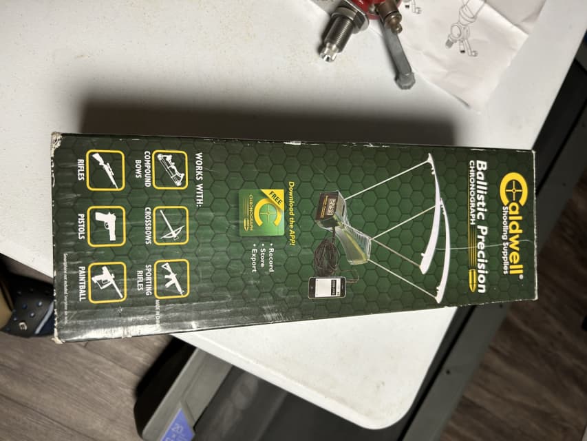 Caldwell Ballistic Chronograph package, comes with everything it did when I bought it including original box, Tripod, chronograph, all cords. Works fine no issues, selling as I upgraded to a labradar. This package is around 235$ online now.