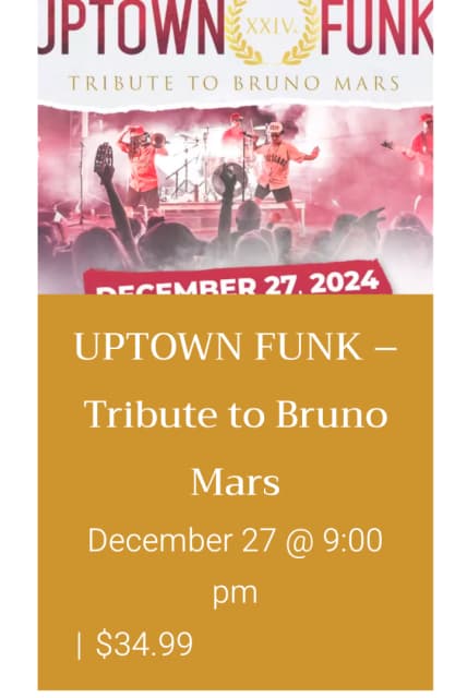 Uptown Funk - A Tribute to Bruno MarsFriday, December 27, 2024 9:00 PM