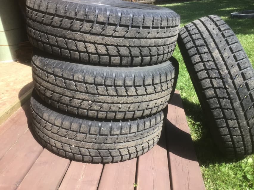 Winter Tires (16") on Alloy Rims for SaleYokohama 215/70R16 GEOLANDER Winter Tires mounted on Silver Lizea alloy rims for sale. Comes with lug nuts, customized nut wrench and hub centric rings. Why wait for the dealership to put tires on when these tires are ready to go! Tread depth measures approximately 7/32nds to 8/32nds. Came off a 2012 Nissan Rogue however multi-lug bolt pattern on rims will accommodate multiple different vehicles (year dependant) including but not limited to Acura (Integra, RDX, TLX), Honda (Accord, CR-V, Civic), Jeep (Compass, Liberty, Patriot, Wrangler), Kia (Carnival), Mazda (CX-3, CX-50, CX-9), Subaru (Forester, Outback) and Toyota (Corolla, RAV4). 5 bolt pattern measures 114.3 mm.