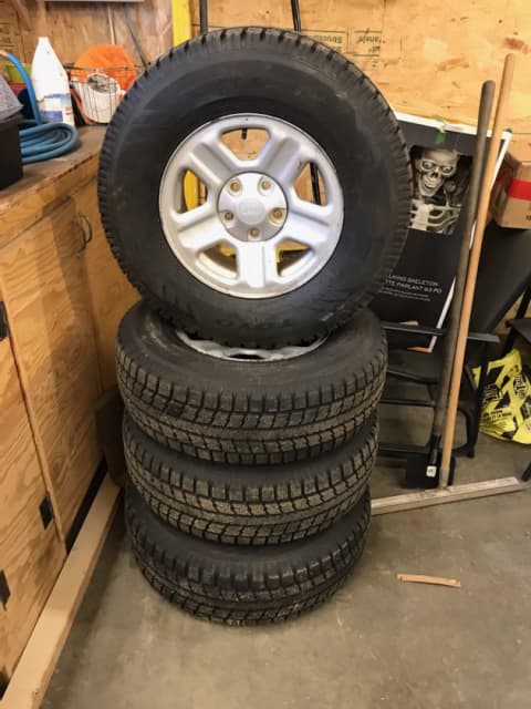 Winter Tires (16") on Alloy Rims for SaleYokohama 215/70R16 GEOLANDER Winter Tires mounted on Silver Lizea alloy rims for sale. Comes with lug nuts, customized nut wrench and hub centric rings. Why wait for the dealership to put tires on when these tires are ready to go! Tread depth measures approximately 7/32nds to 8/32nds. Came off a 2012 Nissan Rogue however multi-lug bolt pattern on rims will accommodate multiple different vehicles (year dependant) including but not limited to Acura (Integra, RDX, TLX), Honda (Accord, CR-V, Civic), Jeep (Compass, Liberty, Patriot, Wrangler), Kia (Carnival), Mazda (CX-3, CX-50, CX-9), Subaru (Forester, Outback) and Toyota (Corolla, RAV4). 5 bolt pattern measures 114.3 mm.