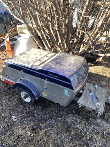 For Sale: Used utility trailer made from a heavy half ton or 3/4 ton truck box when the DVM allowed such ones to be built from.