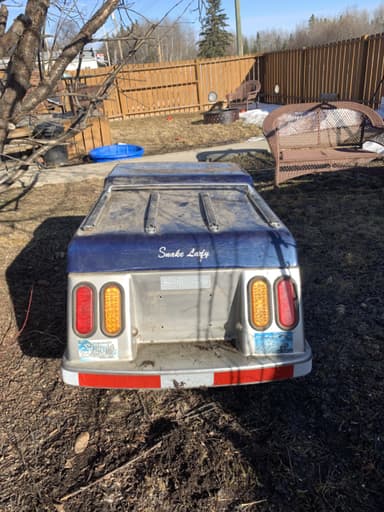 Single axle with functional tail gate made from a 1975-78 truck box and frame. It has a hitch for a 2” ball, functioning factory lights (4 ways, brake & signal lights) just like it was a functioning truck(no aftermarket lights or brackets to mess with. Tires are ok for now, 15” 5 bolt rims on the trailer with an additional set of rims to go with trailer. I have a brand new jack stand to go with as well but have not been welded it on yet. Hitch secure chains included as well as a brand new trailer plug installed, as the last one corroded from sitting too long. No padlocks or hitch locks included in the sale. Trailer bed has got some surface rust and can be cleaned up with a wire brush or sand blaster and resurfaced with tremclad paint or a rubber coating. Pulls very nicely on the highway or gravel roads.