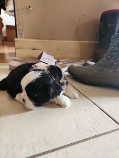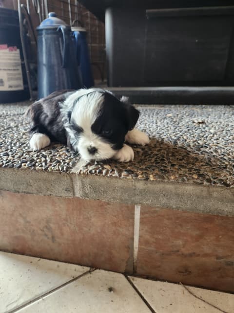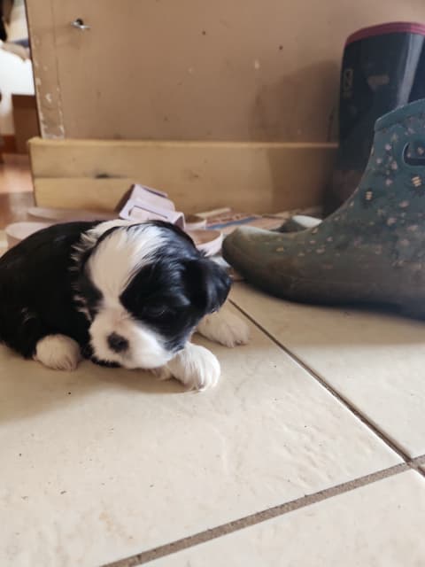 Beautiful black and white shih tzu male puppy for sale. He is so ready to go his new home. . He has been vet checked and have had his 8 week shots and his 12 week shots .He has also been dewormed.We are located by barrhead. Phone number is 780 674 5382 or 780-674-0401.