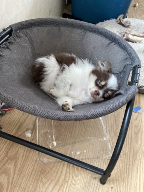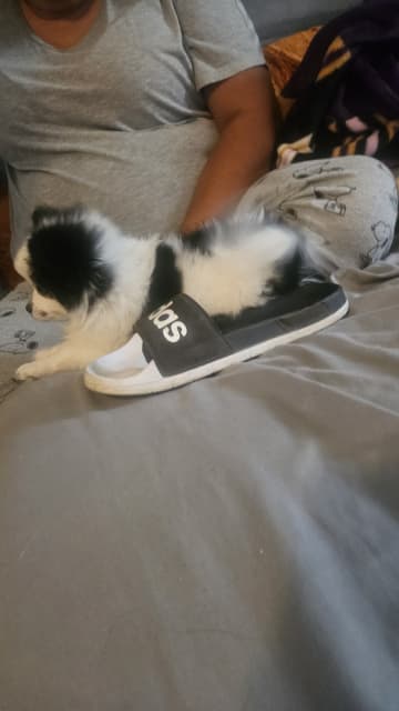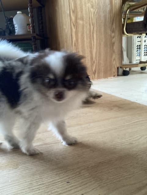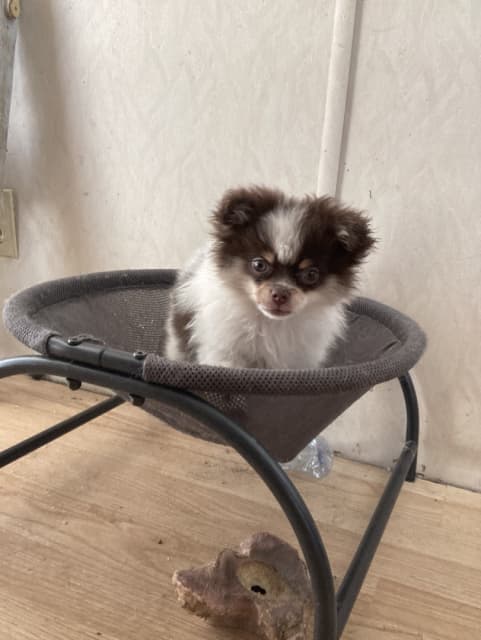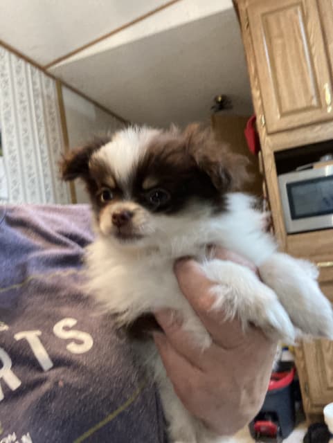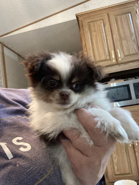 Very small female puppy. she is vaccinated and dewormed ed and pee pad trained. Sweet playful, and a little bit sassy.