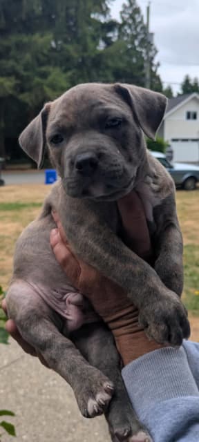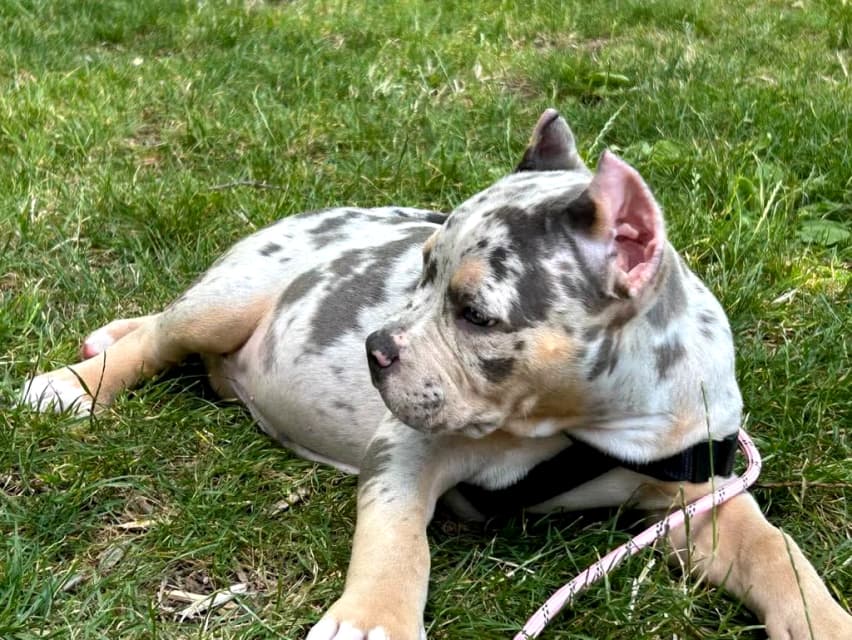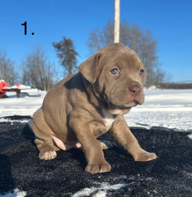Beautiful Micro American Bully female. Great bloodlines, bred for temperament and conformation. This little girl we call River is a sweet outgoing girl. Very bright and easy going. We include a puppy pack, deworming, age appropriate vaccinations, micro chipping, one year health guarantee and vet check. Please feel free to call or text if you would like more information. 403-352-6570. $1000.00 annquest-farm-american-bullys-and-boston-terriers.ca