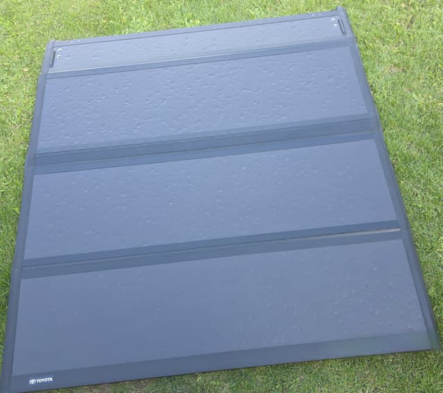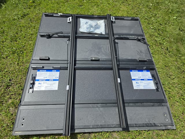 Toyota Tundra Tri-Fold Tonneau Cover – Tough, Weatherproof, Slight Hail Damage – Brand New Hardware Included Upgrade your Toyota Tundra with this hard tri-fold tonneau cover, built for durability and protection in all seasons. This used cover has minor cosmetic hail damage but is 100% functional — no leaks, no cracks, and it still holds water perfectly. It seals tight and protects your truck bed from rain, snow, wind, and dust. ✅ Fits Toyota Tundra 2022+ 5'1/2 bed compatibility for your year/model) ✅ Tri-fold design for easy access and versatile storage ✅ Water-tight seal – zero leaks despite cosmetic damage ✅ Brand new mounting hardware included ✅ Strong and secure – protects your gear while improving fuel efficiency This is a great deal for anyone looking for reliable truck bed protection without paying full price. Perfect for work trucks, camping setups, or daily drivers. 💥 Price reflects minor hail dents only – performance is NOT affected! 📍 Located in Calgary,NW 📦 Pickup only – first come, first served!
