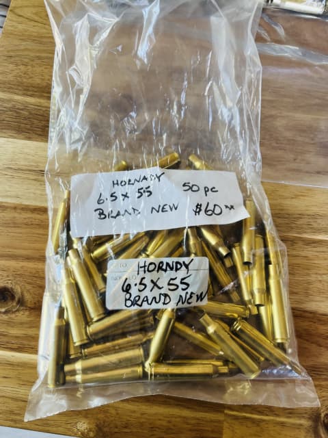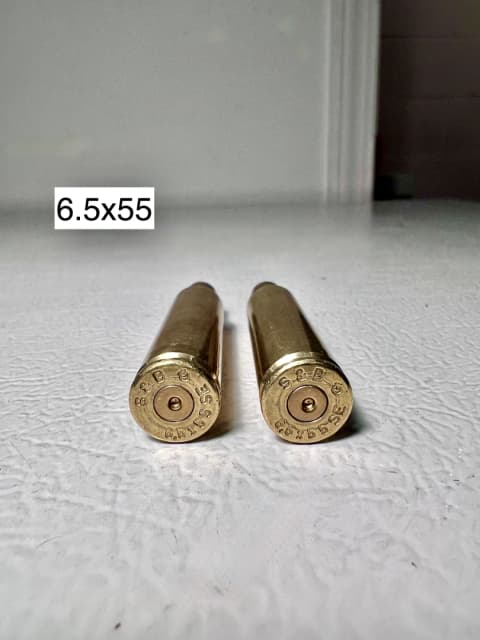 I have 7 brass casings for a 6.5x55 that have been shot once & tumbled clean for $5