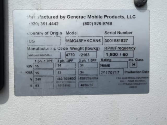 2004 Olympian G50F3 Propane Generator | Low Hours | 50kW Standby