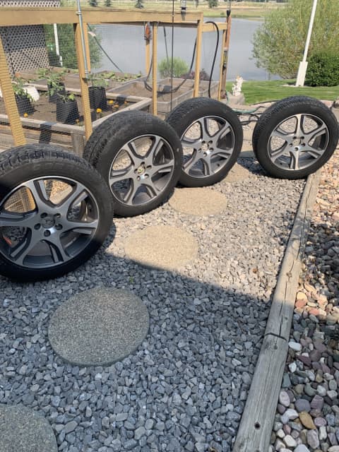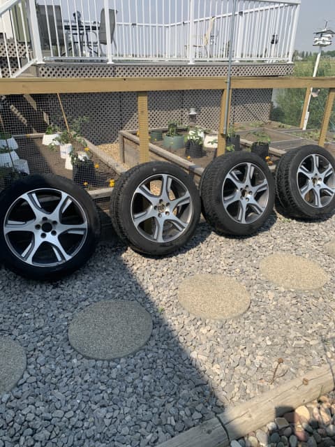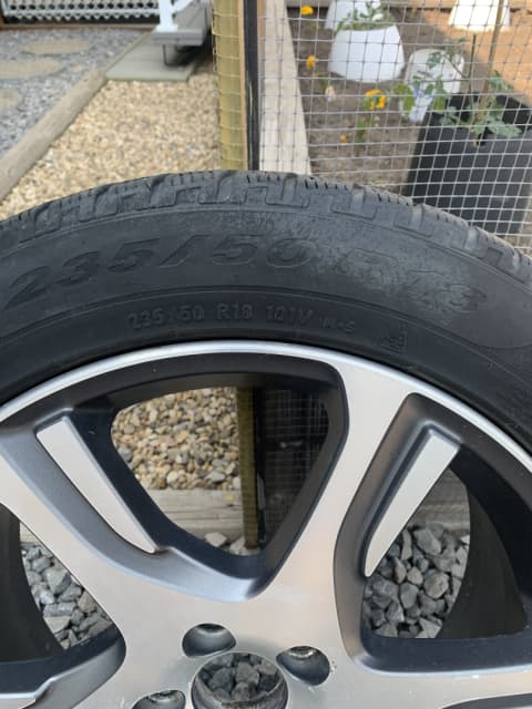 4 attractive alloy rims. 235/50 R18. Bolt pattern 5 x 108mm 18” and tires with a few more miles left in them. Will fit Ford Edge, Escape, Lincoln, Volvo, etc.