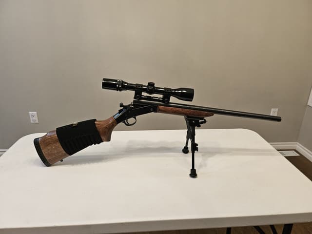 New England firearms handi rifle single shot barrel break 204 Ruger. 1 in 14 twist. 22 inch heavy barrel. Bipod not included. Located in cardston. If ad is up rifle is still available. No trades. Will not ship or deliver. Pal required. Price is negotiable.