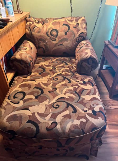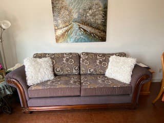 Chocolate Brown Couch with reversible patterned cushions In very good shape. Used by a senior. Too big for my new space. It must be moved out of my condo Monday June 9th or it's gone