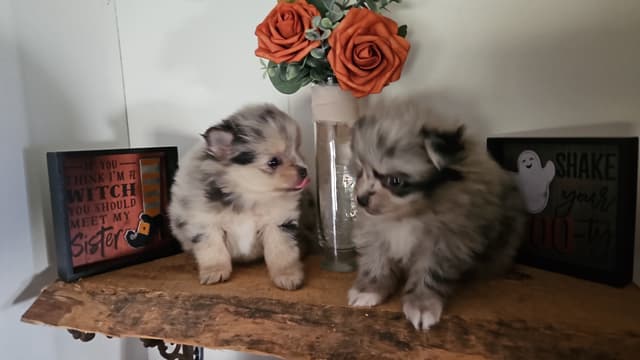 First shots Dewormed Crate trained Litter box trained Male Blue Merle 1200 Male Blue Merle with tan 1500 Chocolate Merle female 1000 Delivery from Edson to Whitecourt Drayton Valley Hinton for cost of fuel Evenings and weekends..Not available after Dec 15th