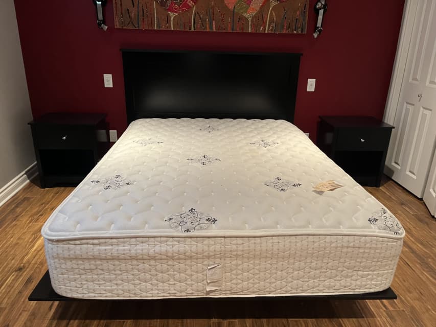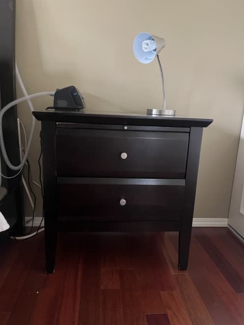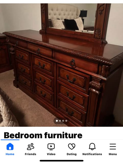 Bedframe, mattress, two bedside tables, six drawer dresser, and a wardrobe - (drawers and shelving) This bedroom set is in beautiful condition.