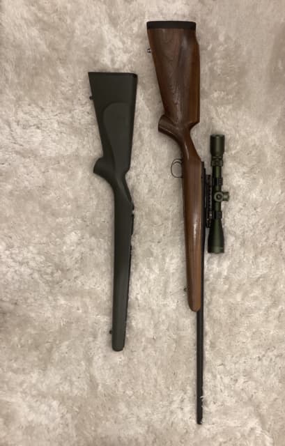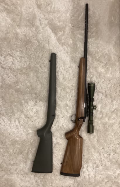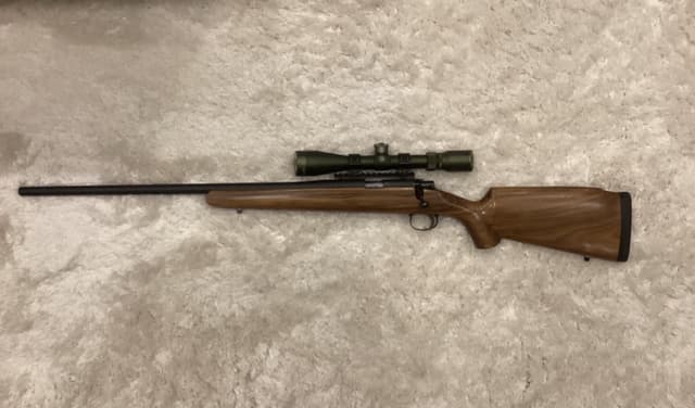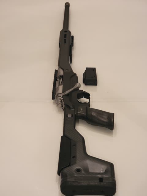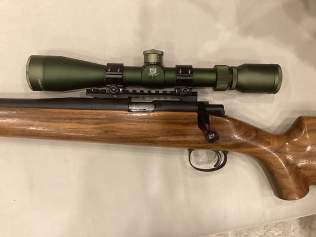 This rifle was purchased and imported by me in 2010. I’m the original owner. This is a left hand bolt action .22lr, magazine fed 5 shot repeater. It has a 24” #3 Douglas barrel,OD green Kevlar stock w/cheekpiece. There are a total of 3-5 shot magazines plus one that needs work to function properly. I’ve ruined enough mags to know better than to try to fix it myself. The barrelled action was a satin finish that’s been Ceracoated. It has a Timney trigger and a Talley picatinny 0 degree rail, also two sets of different height 1” ULA proprietary rings also made by Talley. Includes two EB Rifleman 2.8-9X40 green anodized scopes with P4 reticle and target turrets, a wood M40 style stock that has a pillar bedded action and free floated barrel. The Kevlar stock is full length bedded including the barrel. Speaking of the barrel, it’s a 24” chrome/moly not stainless and it’s 0.660” at the muzzle, so it’s heavier than a standard barrel but it’s not as heavy as a varmint weight barrel. It’s for sale because I’m not going to make good use of it at my age. It’s only going to waste in the gun safe. Once again it is a left hand action. Condition and performance? Condition is Excellent and can it shoot? Absolutely. It’s not picky about ammo. Will shoot most standard velocity well, never tried high velocity and absolutely no Stingers. I believe they’ll cause problems due to the type of chamber. Besides, if you use Stingers you don’t need this type of rifle. If you have any other questions or need more photos, let me know.