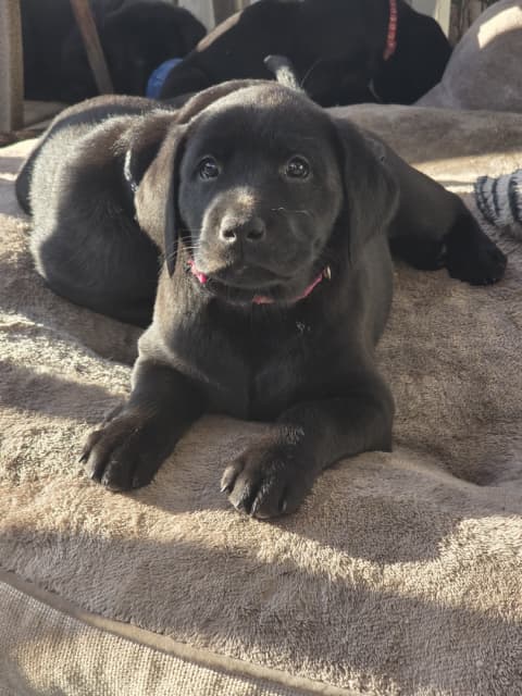 Beautiful Black Labrador Retriever Puppies. Born April 7/25 CKC Registered. Health check. UTD on Dewormings, All vaccinations UTD. Microchip. Crated trained. Basic obedience. House trained. Health certificate. Puppies also come with 1 year health guarantee, and on going Breeder support. Parents have all OFA Clearances (Hips, Elbows, Eyes) and health testing. Have 1 Male, and 3 Females Contact for more information, pictures. Or visit our website www.winerumlabs.com or our FB page WineRum Labs Ready to go to their new homes