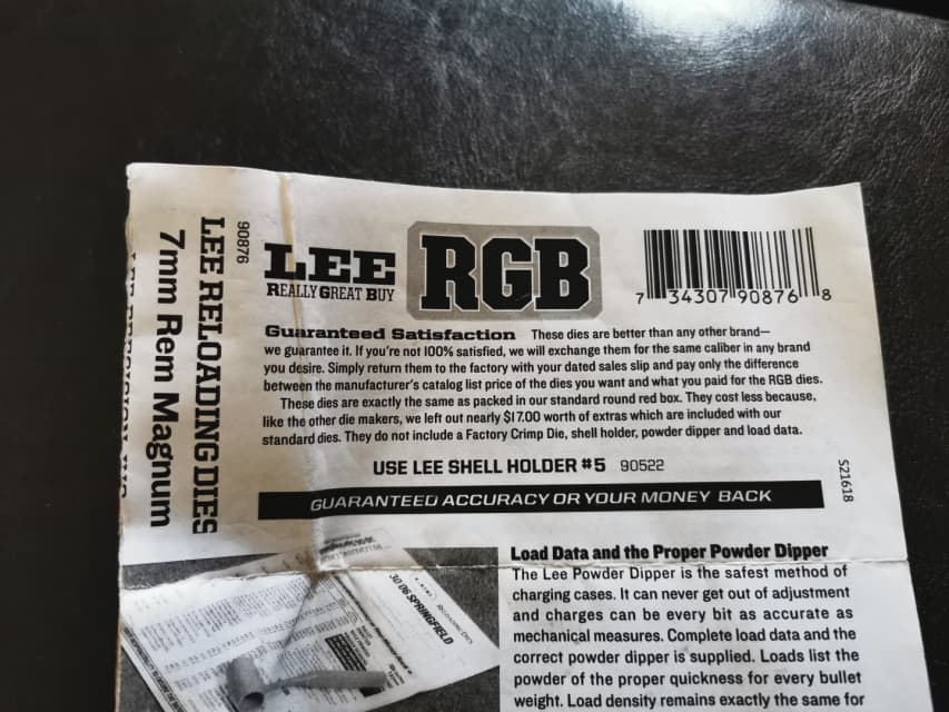 WTT Lee RGB 7mm Mag dies