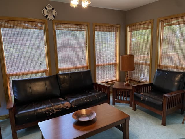 3 piece leatherette couch set - 2 couches 1 single matching chair to give away. FREE