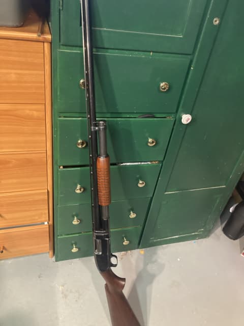 Excellent condition for its age, with original bluing still shining. Minor wear at the barrel-receiver junction and fore-end from normal use,