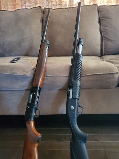 Mag fed, comes with 2 different sized magazines, put less than 10 shells through it, trades welcome, still have box and receipts, comes with different chokes
