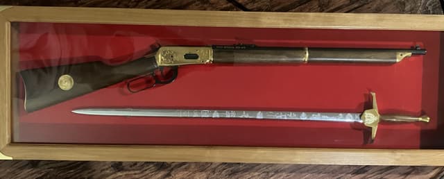 RCMP RIFLE unfired,$2450 ($400 price drop) see photos 2 RCMP SWORDS $1250 each, ($500 price drop) and 1 RCMP FOIL $1450 ($300 price drop). See photos. No original docs or boxes. Custom lighted display case safe storage for rifle or swords behind shatterproof glass, available separately, DISPLAY CASE NOT INCLUDED, but open to offers to $650 Prefer to sell all locally as a unit. No trades, thank you. Prices firm unless making offers on multiple items. Shipping available at buyers expense PAL a must