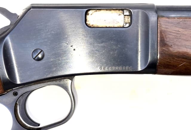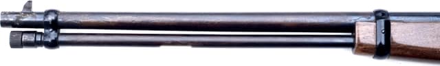 Condition: Very good. Blue on barrel about 75% and blue on action over 90%. Many tiny spots of surface rust on the metal. Very nice rifling. Several small scratches on the varnish of the wood. A small piece of plastic is missing on top of the butt plate. Overall, this is a very nice looking rifle.