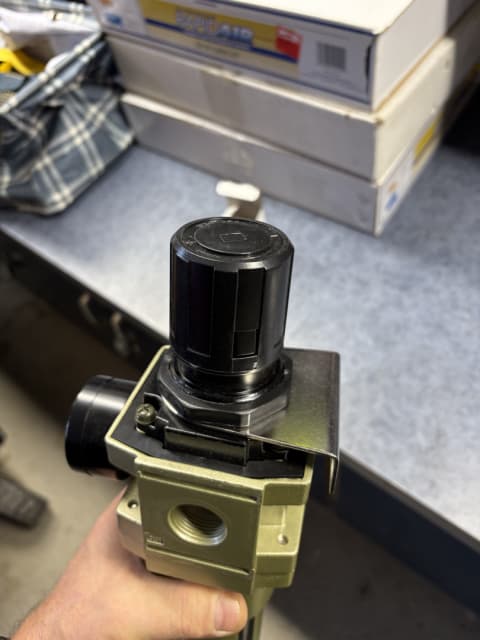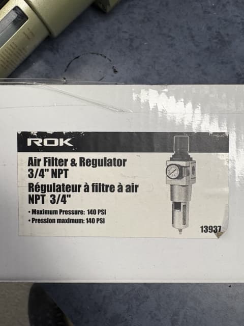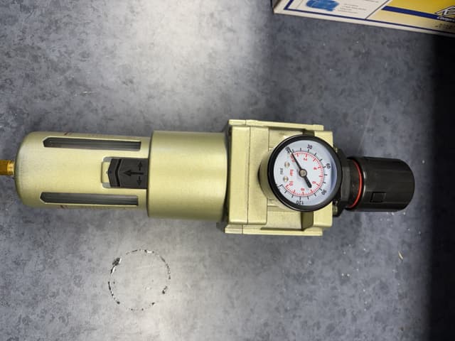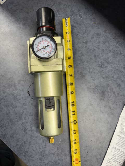 Industrial 3/4 inch Air filter and Pressure regulator. Has water trap to keep moisture out of airlines. Brand new, never used. Bigger than what I thought. Asking $50