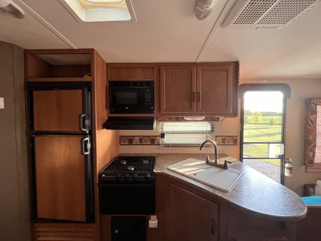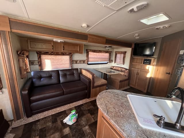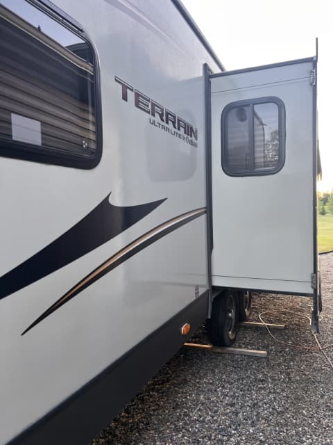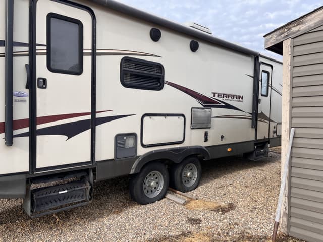 No longer have a vehicle to pull this and want it gone. 2013 Keystone Outback Terrain pull camp trailer (model 273TRL) 30 ft trailer. Original owner. Winterized when not in use and cleaned before and after uses. Had blankets over furniture and rugs on floors so as not to damage inside. Automatic jack installed on the front of the trailer. 2 sets of keys for both doors. Couch and kitchen table can convert to beds, has 1 slide (couch and kitchen table on the slide), has indoor and outdoor sound system, small tv inside, has a small outdoor sink and stove attached. 2 chairs on the end of trailer with table in between them. Power awning. Coming with a brand new mattress inside on the bed. Other supplies coming with trailer include: 3 person tent, broom, small tool box (with misc tools for trailer), all septic tubes, water hose (for drinking water) and drainers inclds septic sacks for start of season, 2 outdoor rugs, pull sway bars, truck hitch, small indoor vacuum cleaner, indoor garbage can, extra dishes, levelling blocks and some towels (mix of bathroom and kitchen), all bedding for back bed inclds pillows and sleeping bag. There has been some edging shrinkage (t molding) throughout the trailer on counter edges, table edging too etc (I am looking to see if the trim can be replaced- approx 2 inch pieces). $28,000. No low ballers please.