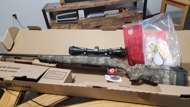 BNIB Savage axis XP 308 win in True Timber Strata Camo. Bolt action detachable magazine. Waver 3-9x40 scope. Comes with Manuals locks everything it should. Pick up in Martensville. Valid Pal Required.