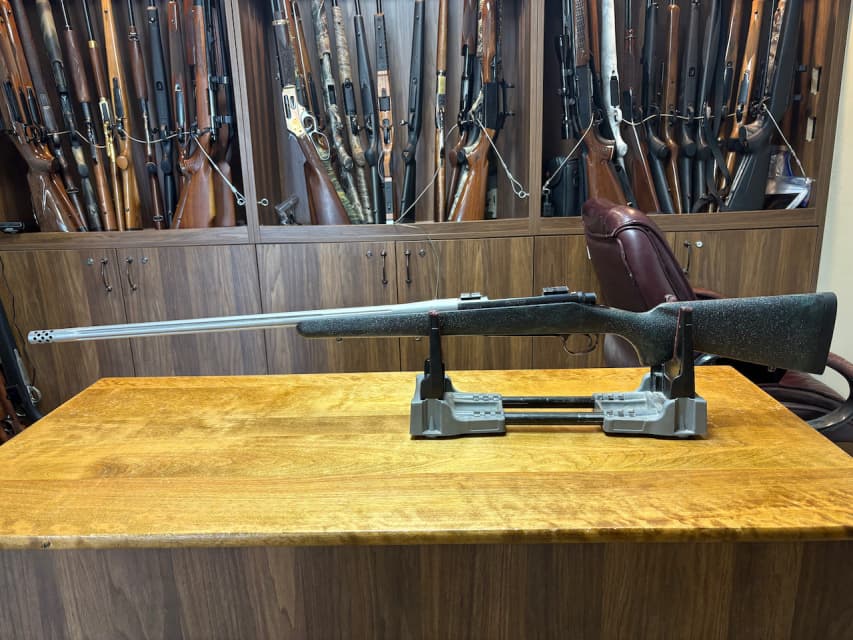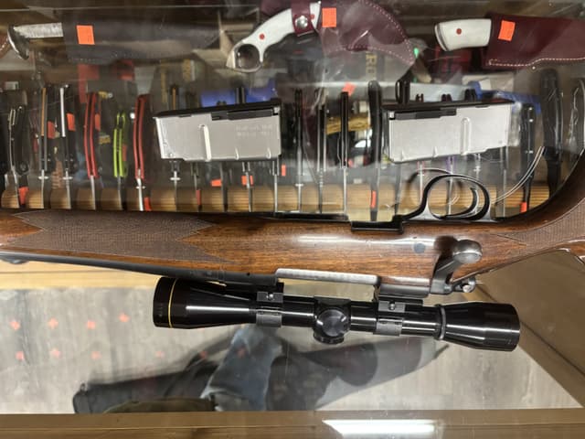 280 Remington with boss, left hand stainless stalker, with stainless lepould scope
