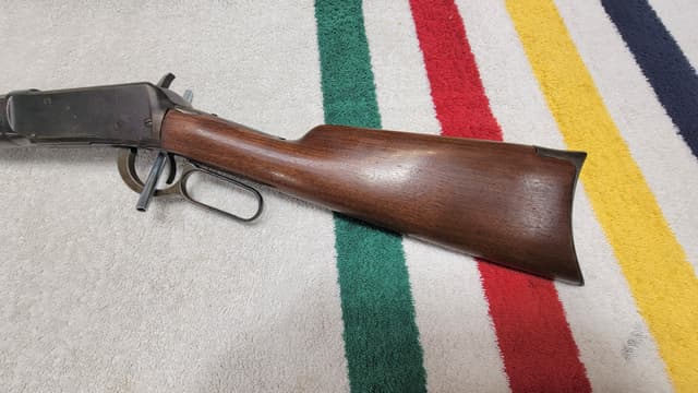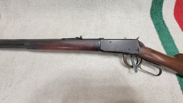 Winchester Model 1894 38-55 Ref #1040 This Winchester is a lever action, sporting rifle, octagon barrel, full mag. Dated 1895 Stock is very good – good. Small tang crack 1” long, and a minor chip gone at tang. Forearm has an app. 2” crack and a few very minor cracks. The stock has typical bang marks. Finish appears original or period correct. Original metal recoil pad fits well. Barrel is 26” long with sights intact, rear sight may have been replaced at one time, again period correct. Bore has black powder corrosion but it’s clean now and has rifling top to bottom. Bluing appears original and app. 75-85% throughout. There are bumps and scratches on metal and evidence of minor surface rusting. Screws have been used, but in very good shape. The lever functions well, safety checks out and the trigger pull, and drop are good. Firing pin is evident and protrudes when pushed on. Ejector is intact and tight, and magazine follower functions correctly. Overall, I grade this firearm as very good and should be fully functional. I did not test with snap caps or fire. Only reasonable offers are considered. Low ball offers will not be responded to. Trades in person only. The firearms and accessories I sell may be new or used and are usually acquired through estate liquidations. I visually inspect them and check basic operation only and share what I know or find in the description and photos. They are not live test fired. I provide full disclosure on what I find but can not be held responsible for what I may miss. It is your responsibility to have your firearm inspected by a competent gunsmith before firing, shoot at your own risk. I am not a gunsmith. I do not warrantee these guns or any associated accessories, nor do I accept returns. They are, as is, where is, and all sales are final. On final purchase you have accepted full responsibility for the item. E-transfer or cash only. S/H & insurance are extra. Tracking number will be provided. I require your full name, PAL #, date of birth and email address for licence verification for firearms and ammunition. Thanks, Darcy Darcy's Estate Liquidations