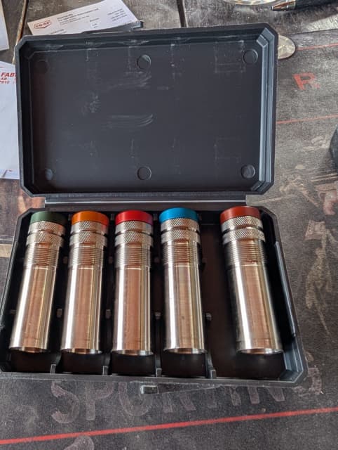 Beretta Mobile-Choke Flush 12ga PACK ONE ONLY AVAILABLE like new Fits Beretta Silver Pigeon I (field models), A300 Outlander, 687 (field models), Some 391 Models. These choke tubes are factory OEM replacements for 12 gauge shotguns with the Mobilchoke system. This package included the following chokes; TWO x FULL – 2 notches – 0.694″ ONE x IMPROVED MODIFIED – 3 notches – 0.709″ ONE x MODIFIED – 4 notches – 0.715″ ONE x IMPROVED CYLINDER – 4 notches -0.719″ ONE x SKEET – 5 notches -0.722″ ONE CHOCKE WRENCH ONE PLASTIC CASE