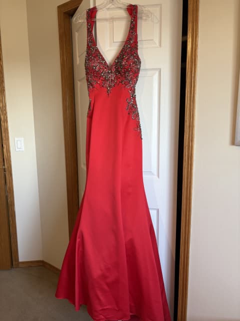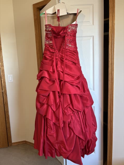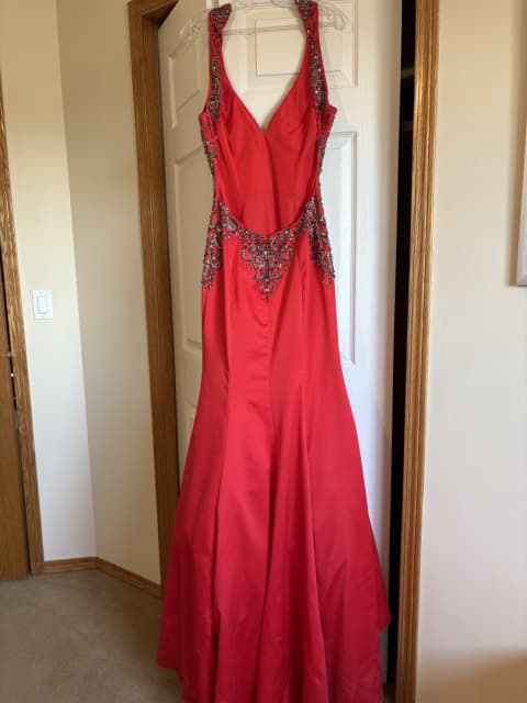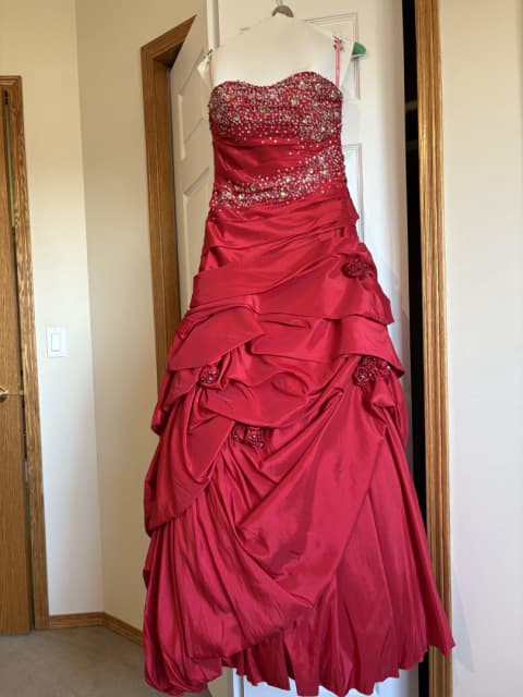 3 dresses purchased new, from bridal shops in Calgary, all worn once, great condition. 1) Red strapless with sequins, back lace up, size 6 (Flirt by Maggie Sottero) 2) pastel mauve with lace bodice, off the shoulder, size 10 (Belsoie) 3) Red, fitted body with halter straps and black sequins, open back, size 6 Can send pictures if interested.