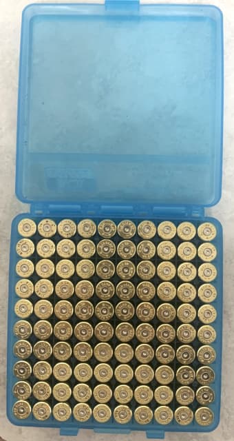 Blue MTM case-gard 50H case with (qty:7) Winchester 7mm08 REM reloaded cartridges and (qty:6) shot once brass casings ( mellonRSCA)