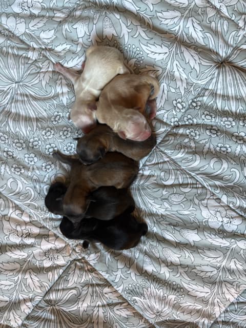 We have 5 Poogle (Beagle × Poodle) pups looking for their forever homes! A poogle is considered a great dog breed due to its friendly, playful, and affectionate temperament, making it a wonderful family dog. Poogles are known for their intelligence and trainability, inheriting positive traits from both parent breeds. Available Date: Puppies can go home July 30, 2025. Size: Expected to mature to around 25-30 lbs—perfect for cuddling! Coat: Low-shedding coats, will require some grooming. Health Guarantee: Pups will receive a Veterinary exam, first-round vaccinations, and deworming before joining your family.