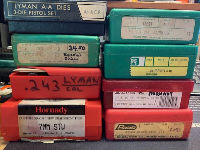 VARIOUS USED RIFLE & PISTOL DIE SETS FOR SALE