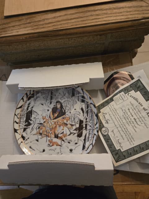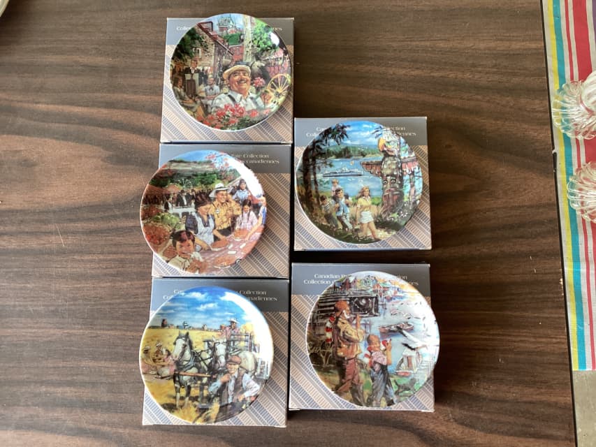 Treasured Days Plates (7) with white solid stands. Plates are in new condition.