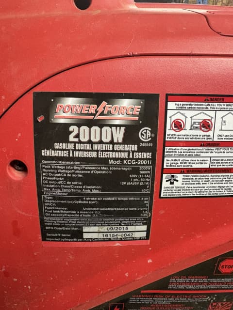 2000 Watt King Canada Inverter Generator for sale, bought a bigger one to run the A/C on holiday trailer, so I don’t need this one anymore. $500.00 obo