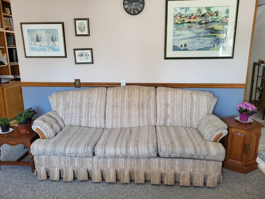 Lazy boy Genuine leather reclining sofa and love seat for sale. Recliners on couch are bent, some cat claw marks on both. Both in nice condition.