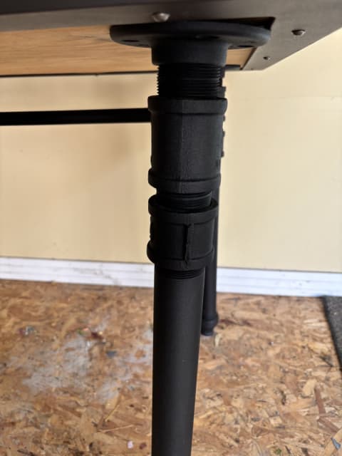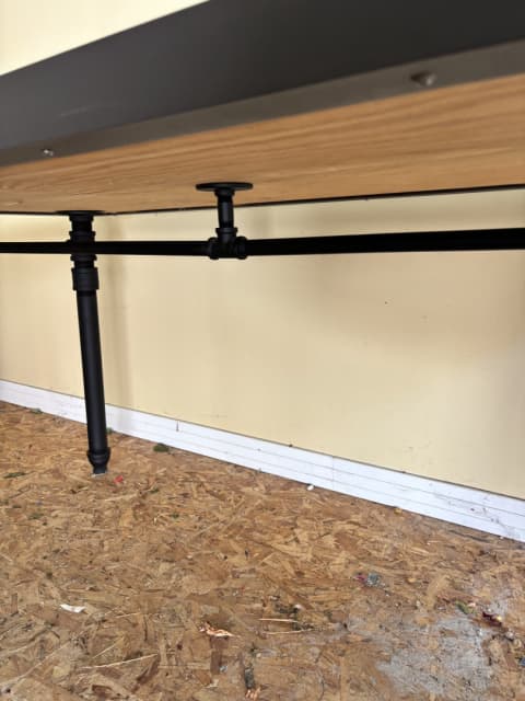 Tile top dining table with industrial black base