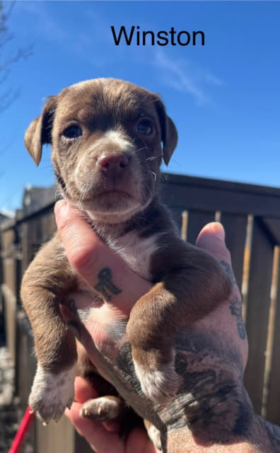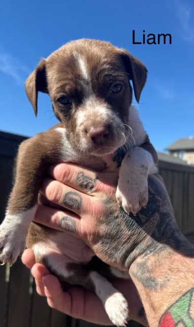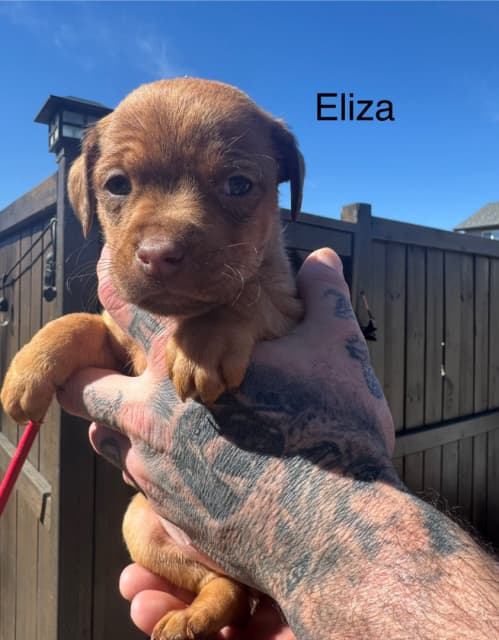 Adorable pups! Will change a lot as they mature. 7 girls 4 boys . moms Springer spaniel x Aussie shepherd dad is a pitbull. Will be super socialized & come with shots for an additional $100 and deworming. Will be ready to go first week may. Potentially open to trades. A bit about the pups since they’re showing personality now! Rosie- biggest girl of the litter. Super outgoing and chubby loves to be front and centre for attention. Elsie- runt of the litter but don’t let that fool you she’s full of spice but also is everything nice. Loves to cuddle and be around her people. Tiny but mighty. Tiffany- has the cutest little face and big puppy dog eyes that melt your heart. Plays with her siblings really well and enjoys being around them a lot. Stays by you when walking and loves to do cute playful jumps on the ground. Winston- the sweetest boy in the litter. Loveeees to cuddle with his specific person that he loves. (My daughter) lol! Quite the little suck but also likes following around his person and sticking in eyesight. Liam- although he blends in with the others so well you almost don’t even notice he’s there he is super social and likes to follow the crowd around and accept the day as it comes. First pup to play with toys and always first for food! Ivory- is a gorgeous girl with very short fur that almost gleams in the sun. She is truly Ivory and fits her name well. Super sweet little girl who loves to play with her sisters mostly that look identical to her. Loves to sleep. Iris- is a chunky little lady who loves playing and being the centre of love. Up there in the front of the others to get attention from her humans. Eliza- is a gorgeous red color that stands out so much in the sun. She is the quiet one of the litter who waits her turn and sits at the back waiting for your attention but not overbearing at all. She is a really lovely girl (one of my favorites for sure) Anymore info needed please ask away!