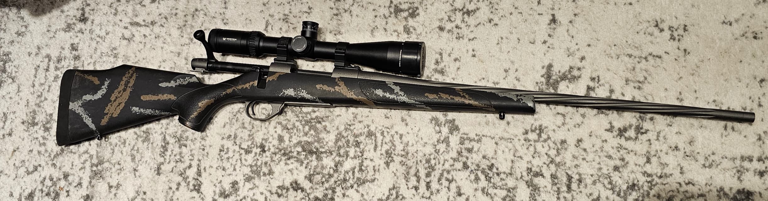 has a 26" barrel Mint condition except for one small chip at the back of the action previous owner bought the gun shot it loose holds a 3.5 x10 40 mm on a 1 in tube leupold CDs $1300 scope (other scopes available or bare rifle 1k) this cds is brand new rings are lapped scope is boresighted I had a different scope on this to see how it shot and it is a shooter you would swear it's brand new if you see it I have shot Mega Trophy whitetail deer and Elk couple of moose with this caliber with a 115 partition bullet with no complaints I love my 257 Weatherby can separate ,1200 without scope 1k for scope