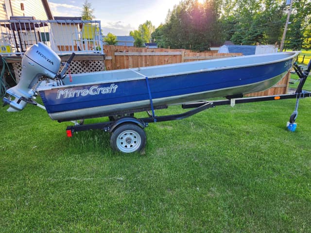 12 foot aluminum boat and trailer with 5hp Honda 4 stroke motor