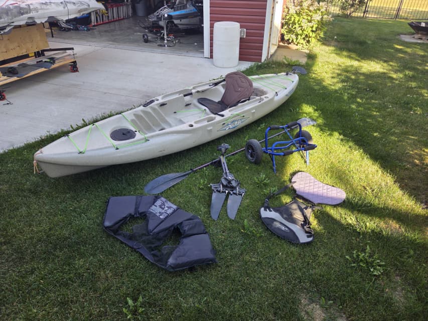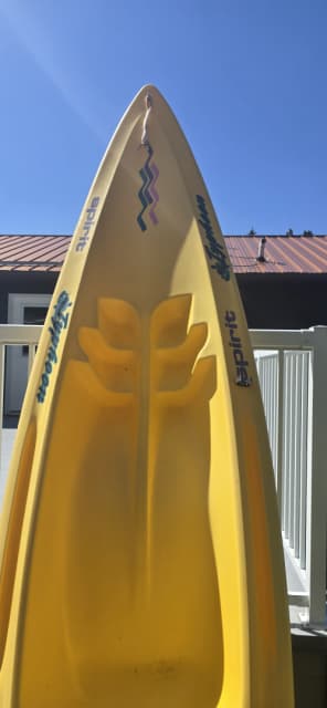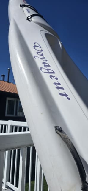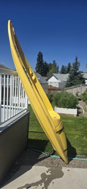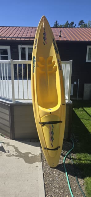 Old Town dimension spirit typhoon kayak 11ft,yellow, 1 oar. as is in photos. Voyager 14ft kayak, white, 1 oar. as is in photos. Both Kayaks are located in tumbler ridge bc. 1,000$ for the pair. firm. no trades, no delivery. any questions please ask, thank you.
