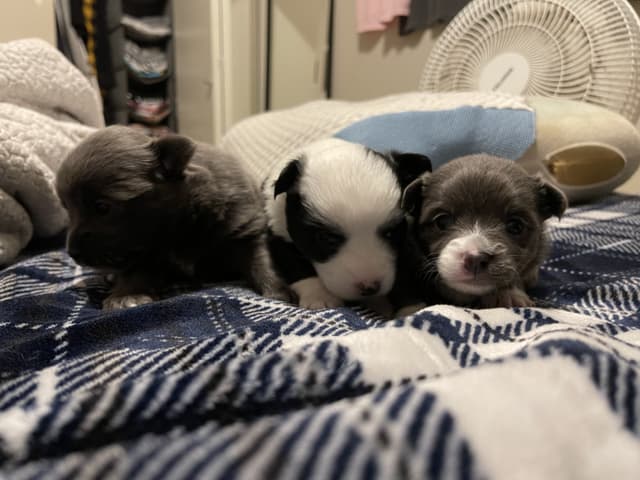 We are ready to start accepting deposits on our little trio! These girls will be ready to head home at the end of February. Mom is a 8lb Pomeranian-Chihuahua, dad is a 6lb purebred Chihuahua. Both dogs embark tested with no health issues. They will come with age appropriate vaccines and vet check. Our puppies are raised in our home and are well socialized before they head off to their new homes. We are happy to do face time visits, and can provide references from previous puppy families. - $1250.00 each and $500.00 non refundable deposit to hold. Please don't hesitate to reach out with any questions. ONE PRECIOUS FEMALE LEFT ***